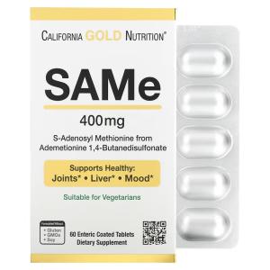 Бутандисульфонат, SAMe, California Gold Nutrition, 400 мг, 60 таблеток, вкритих кишковорозчинною оболонкою