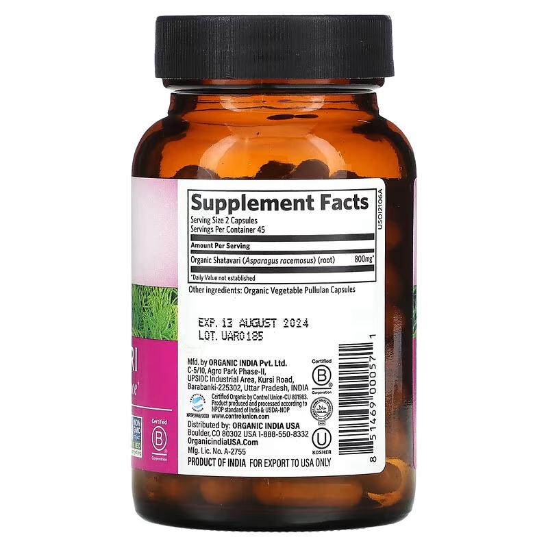 Organic India, Шатаварі, 90 вегетаріанських капсул — це харчова добавка, що містить екстракт трави шатаварі. Шатаварі — це кучерява лоза, що росте в Індії, яка століттями використовувалася в традиційній аюрведичній медицині для різних цілей для здоров'я, особливо для жіночого здоров'я. Декілька позитивних факторів від компанії Organic India.