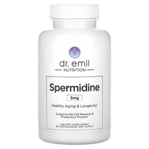 Компанія Dr. Emil Nutrition є спермідин у вигляді харчової добавки, що містить 5 мг спермідину в кожній капсулі. Цей природний поліамінний з'єднання відіграє важливу роль у клітинних процесах, таких як автофагія, регенерація та підтримка довголіття. Капсули виготовлені з високоякісних інгредієнтів і не містять ГМО, глютену або штучних барвників, що підкреслює їхню натуральність та безпеку. Прийом спермідину може підтримувати здоров'я шляхом стимуляції автофагії, покращення регенерації клітин, збільшення тривалості життя та покращення когнітивних функцій.