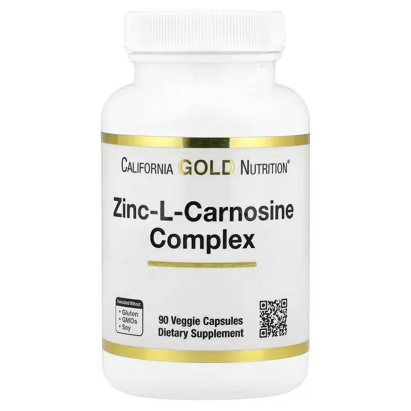 Цинк-L-карнозин, Zinc-L-Carnosine Complex, California Gold Nutrition, 90 рослинних капсул