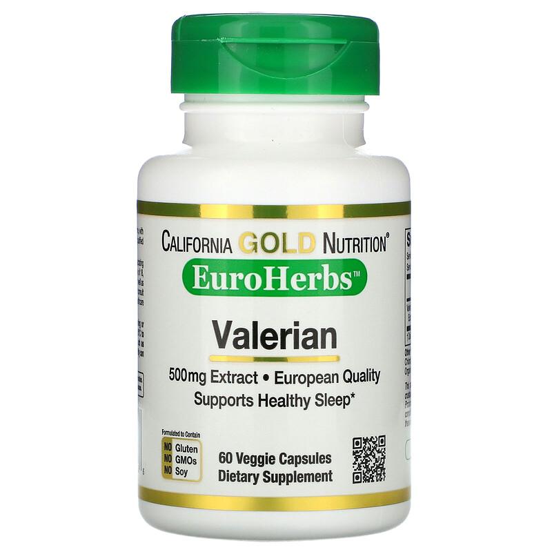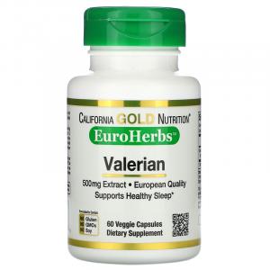 Валеріана, Valerian, California Gold Nutrition, EuroHerbs, 500 мг, 60 рослинних капсул
