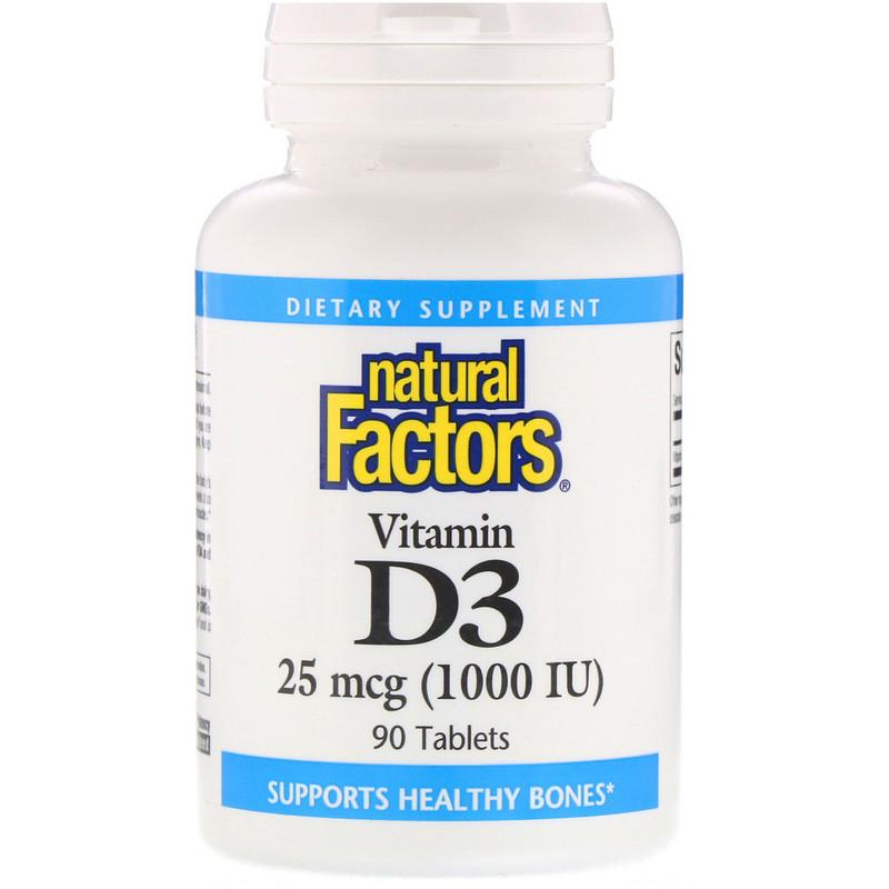 Вітамін D3, Vitamin D3, Natural Factors, 25 мкг (1000 МО), 90 таблеток