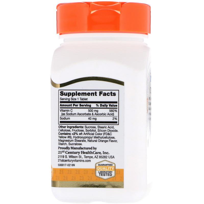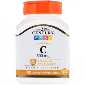 Вітамін С 500 мг від компанії 21st Century- це біодобавка, яка має антиоксиданту дію, має приємний смак апельсина, надає імунну підтримку організму, особливо ефективна в період застуд і грипу, випускається у формі жувальних таблеток.