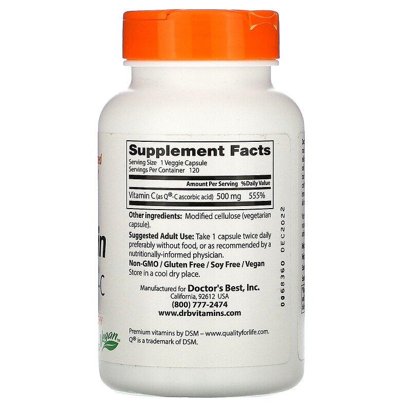 Вітамін С, Vitamin C, Doctor's Best, 500 мг, 120 капсул