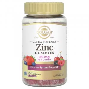 Цинк, підвищена ефективність, фруктове асорті, Zinc Gummies Ultra Potency Mixed Fruit, Solgar, 25 мг, 60 жувальних таблеток